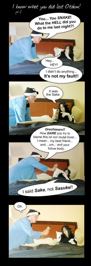 My friend and I went to Otakon - dressed as Naruto and Orochimaru (in their pajamas!!) It all started out innocently enough, and then... well... this happened: